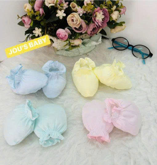 VK-Set nón bao tay chân MOONA vải Petit mềm mịn cho bé sơ sinh từ 0-6 tháng( Sỉ từ 5 set)