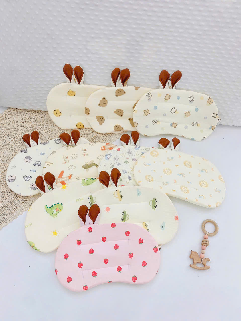 Gối cong muslin tai thỏ 12 lớp cho bé sơ sinh 0-6 tháng