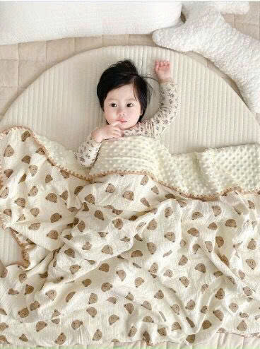 Chăn Xô Cho Bé Muslin 2 Lớp Một Mặt Hình Hạt Đậu Kích Thước 100x110cm Các mẹ mê phong cách Hàn Quốc đừng bỏ qua item này nhé ạ