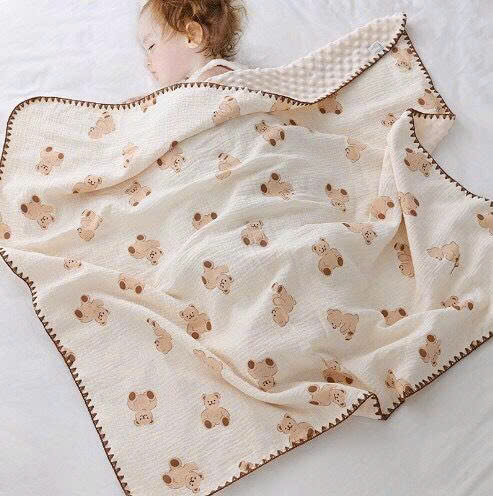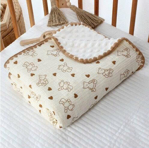 🥰 Chăn 2 lớp vải xô + 1 lớp vải nhung hạt đậu thân thiện với làn da nhạy cảm của bé, vừa thoáng khí, mềm mại, bé đắp đủ ấm mà lại không sợ bé bị ngạt – Mặt trước vải Muslin giúp chăn thoáng khí, thấm hút tốt, an toàn tuyệt đối cho làm da mềm mỏng và nhạy cảm của bé.