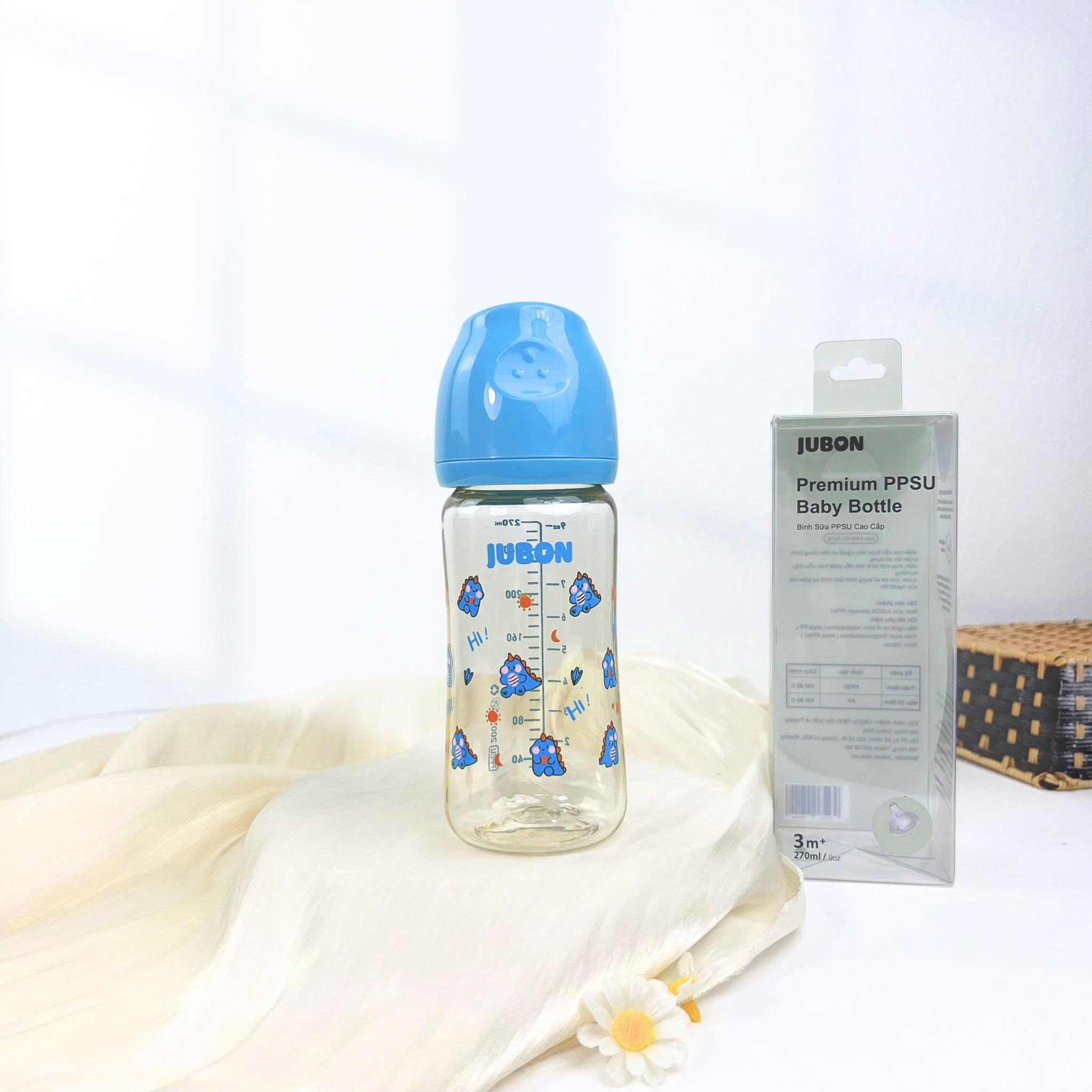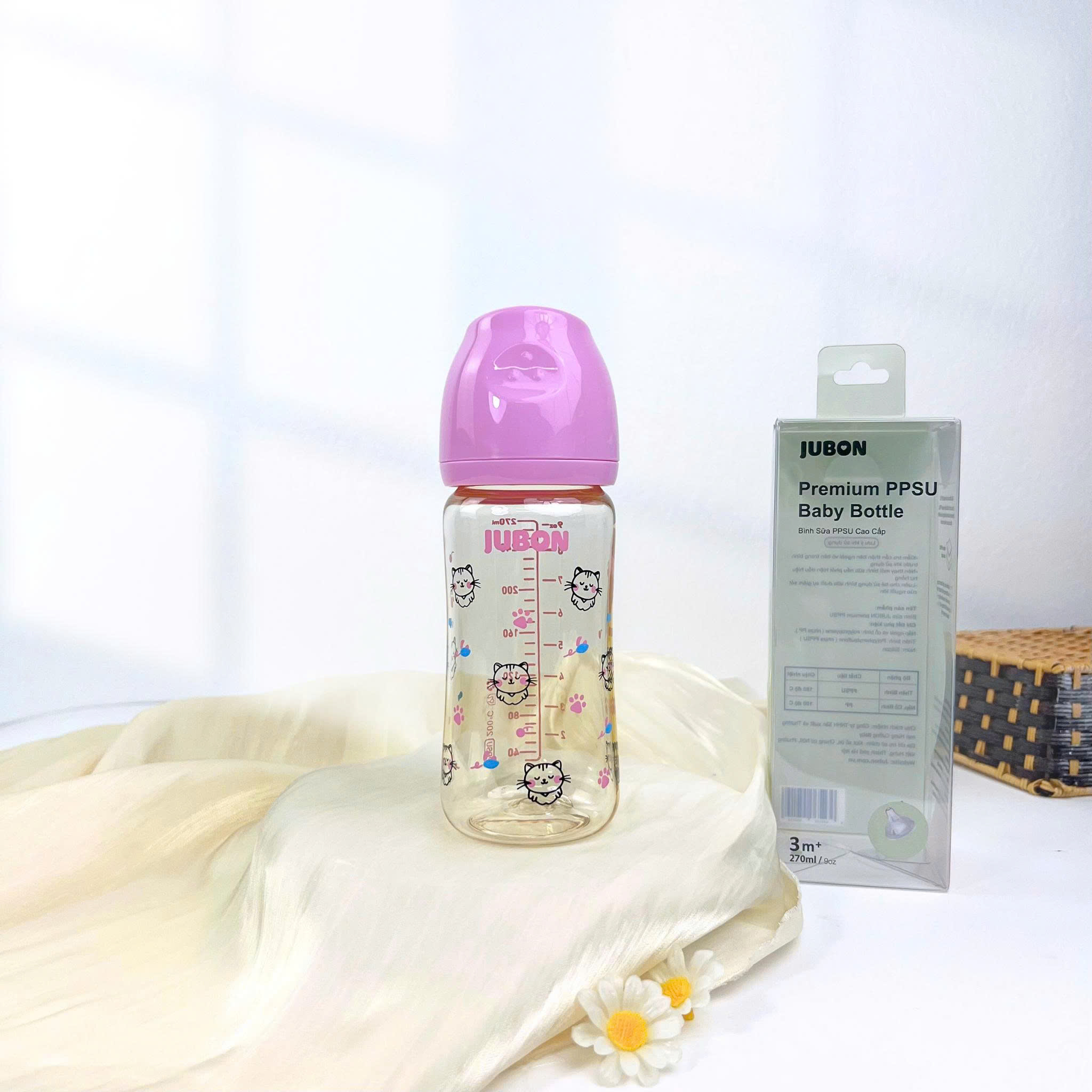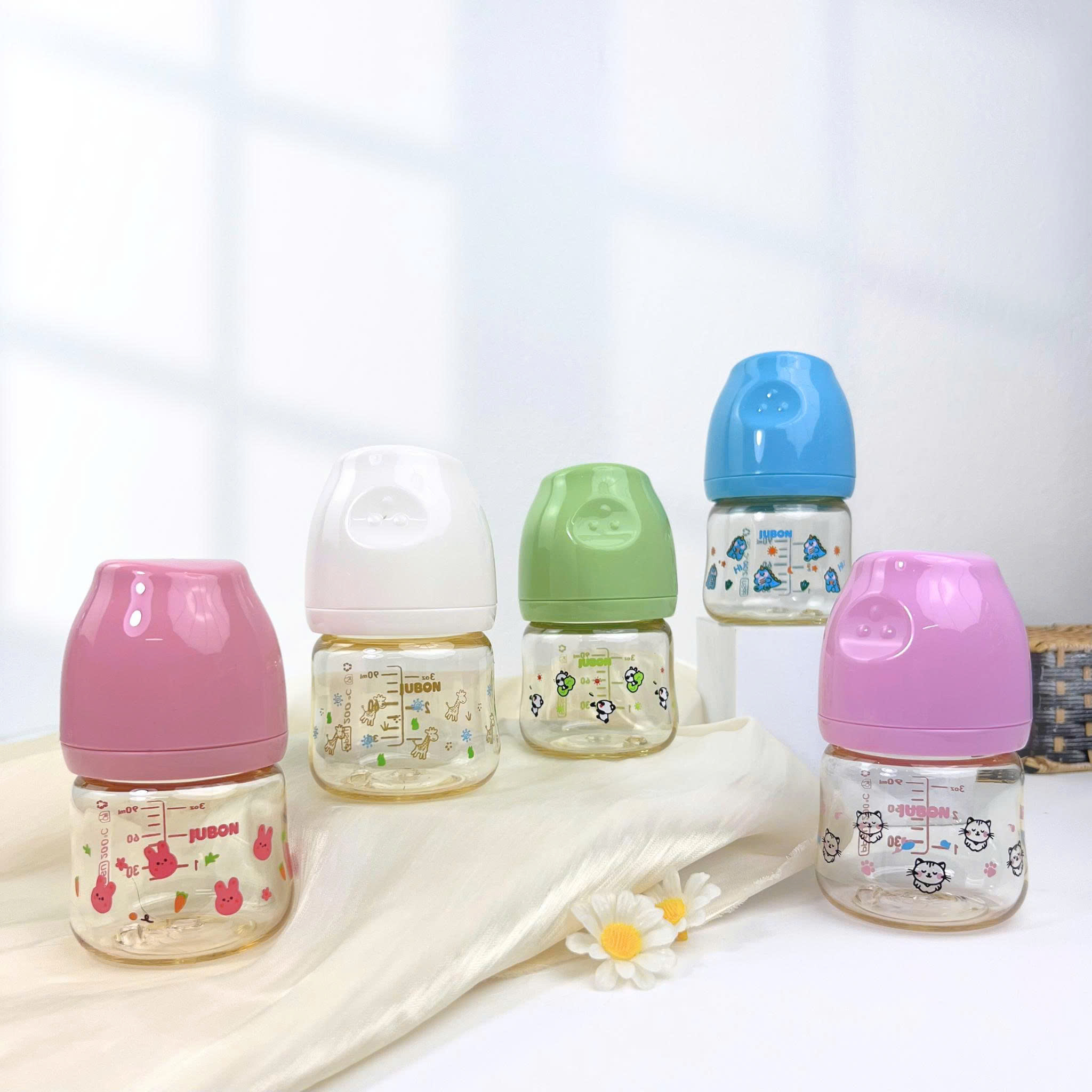 (Mẫu mới)Bình sữa PPSU Jubon in họa tiết season nắp màu dung tích 170ml-270ml