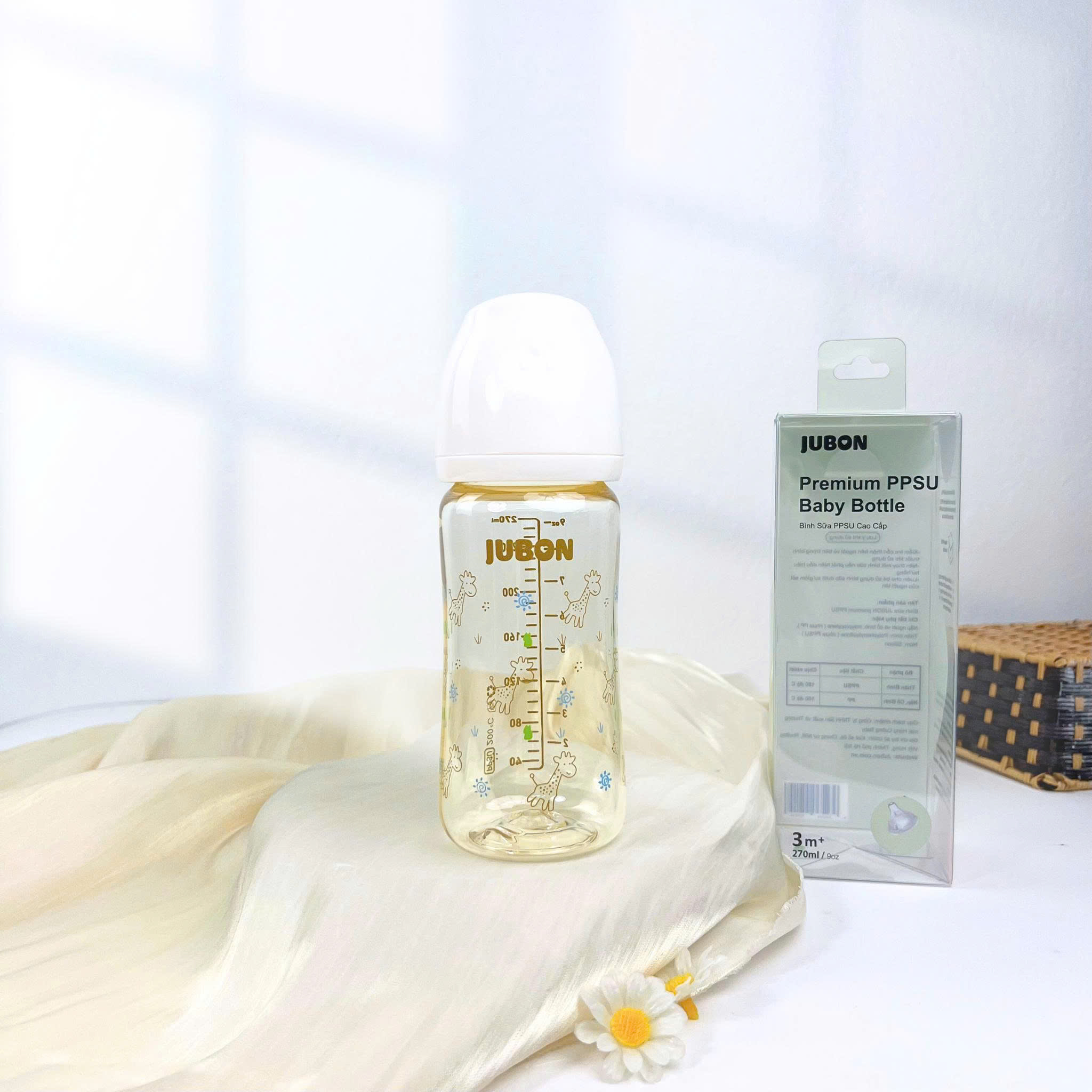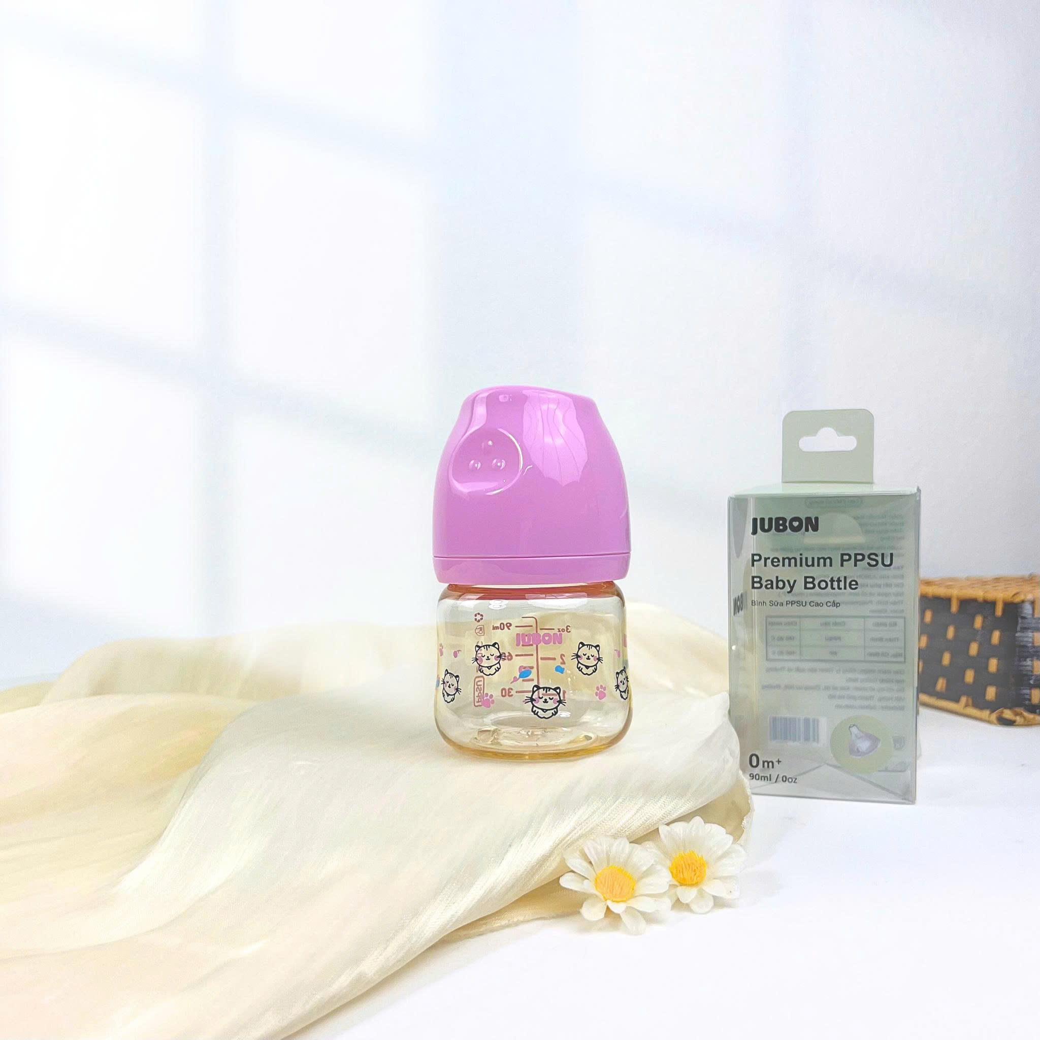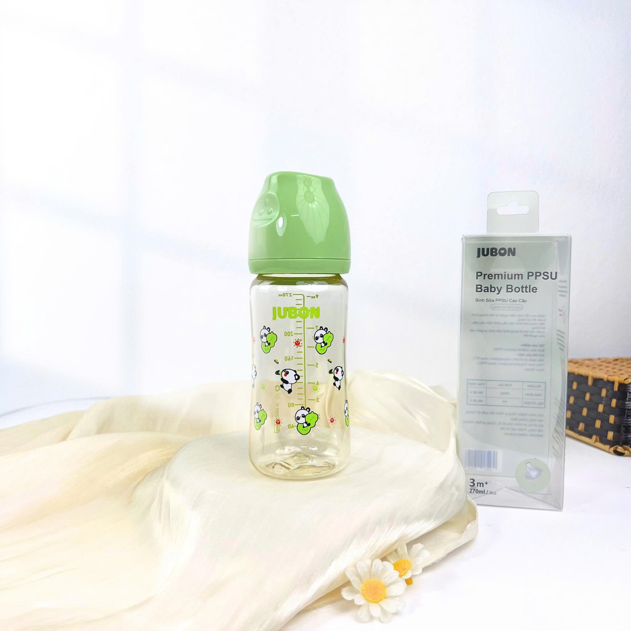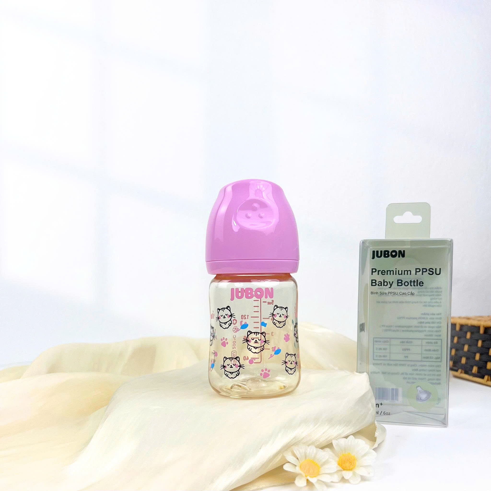 (Mẫu mới)Bình sữa PPSU Jubon in họa tiết season nắp màu dung tích 170ml-270ml