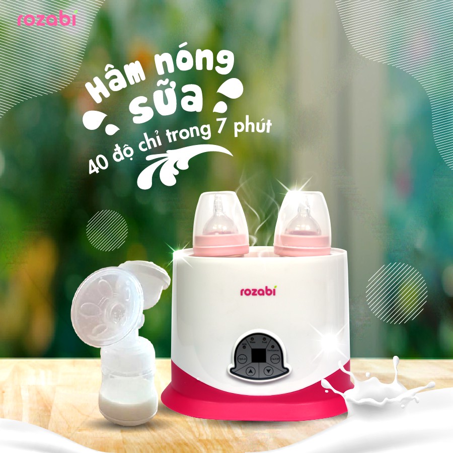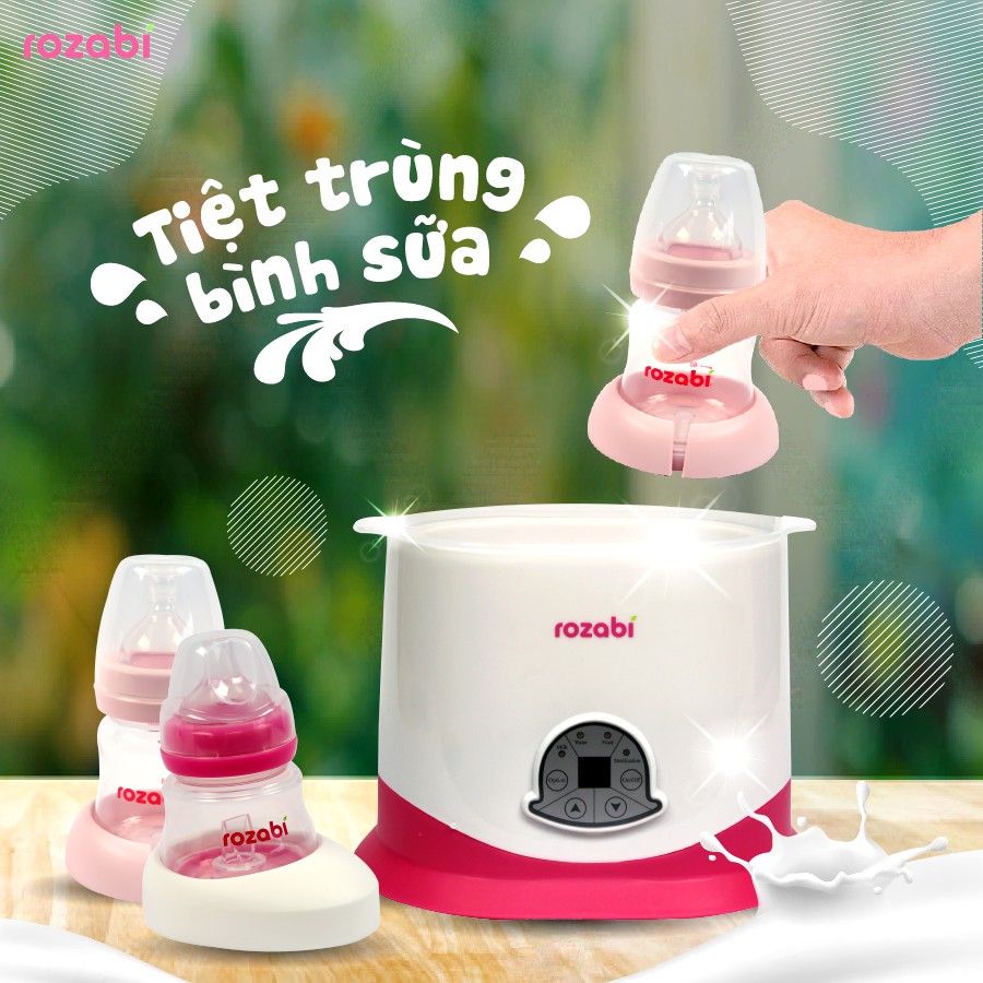 - 1 Máy hâm sữa tiệt trùng điện tử 5 chức năng 2 bình cổ rộng Rozabi