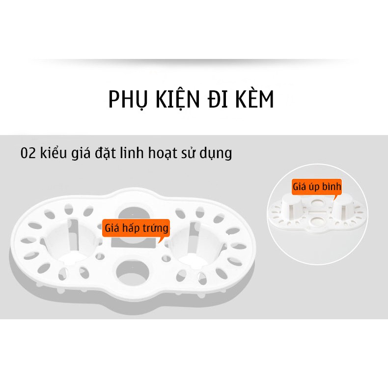 - Có khay để linh hoạt cách sử dụng, 1 mặt để úp bình, 1 mặt để trứng hoặc thức ăn