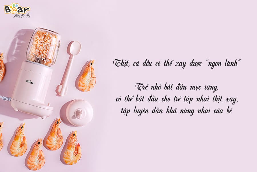 - Đối với giai đoạn phát triển trên 1 tuổi, bạn có thể cho bé được trải nghiệm nhiều món ăn dặm khác nhau như sinh tố, bánh ăn dặm, cháo dinh dưỡng mặn, cháo dinh dưỡng ngọt, các loại củ quả nghiền,… Thực đơn ăn dặm càng phong phú, các chất dinh dưỡng càng nhiều và cơ thể, trí óc của bé sẽ được phát triển toàn diện. Với máy xay 3 cối Bear, bạn hoàn toàn có thể tạo ra những bữa ăn đa dạng và chất lượng cho con của mình.