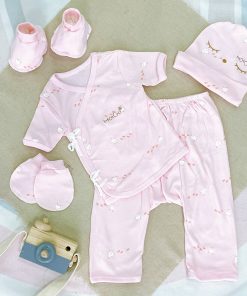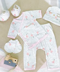 Set quần áo cột dây sơ sinh kèm phụ kiện nón bao tay chân Hotga